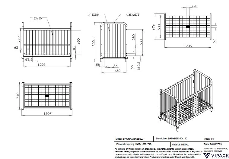 Vintage & industriële look. - Metalen lattenbodem: voor optimale ventilatie van de matras.- In hoogte verstelbare lattenbodem: past zich aan de groei van je kindje aan.- Veiligheid: het metalen Jaxx bed is stevig en stabiel.- Van hoge kwaliteit & milieuvriendelijk.- Minimalistisch metalen ontwerp voor een gewaagde look!- Geschikt voor een matras met afmetingen L 120 cm x B 60 cm x H 10 cm.- Afmetingen bed: L 130,7 cm x B 71 cm x H 106 cm.